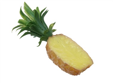 Halve ananas (19x8 cm), deze tropische vrucht kan goed als decoratie gebruikt worden voor in de keuken, tuin of bij een gerecht voor carnaval, themafeest of gewoon voor de fruitschaal. Ook in andere groente -en fruitsoorten verkrijgbaar.