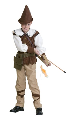 3-delig Robin kinder kostuum bruin dat bestaat uit een bovendeel, een broek en een ceintuur met tas. Goed geschikt voor een verjaardagsfeestje, een middeleeuws feest en voor Carnaval. Tevens leuk te combineren met het Robin heren kostuum. De Hoed moet appart worden bijbesteld.